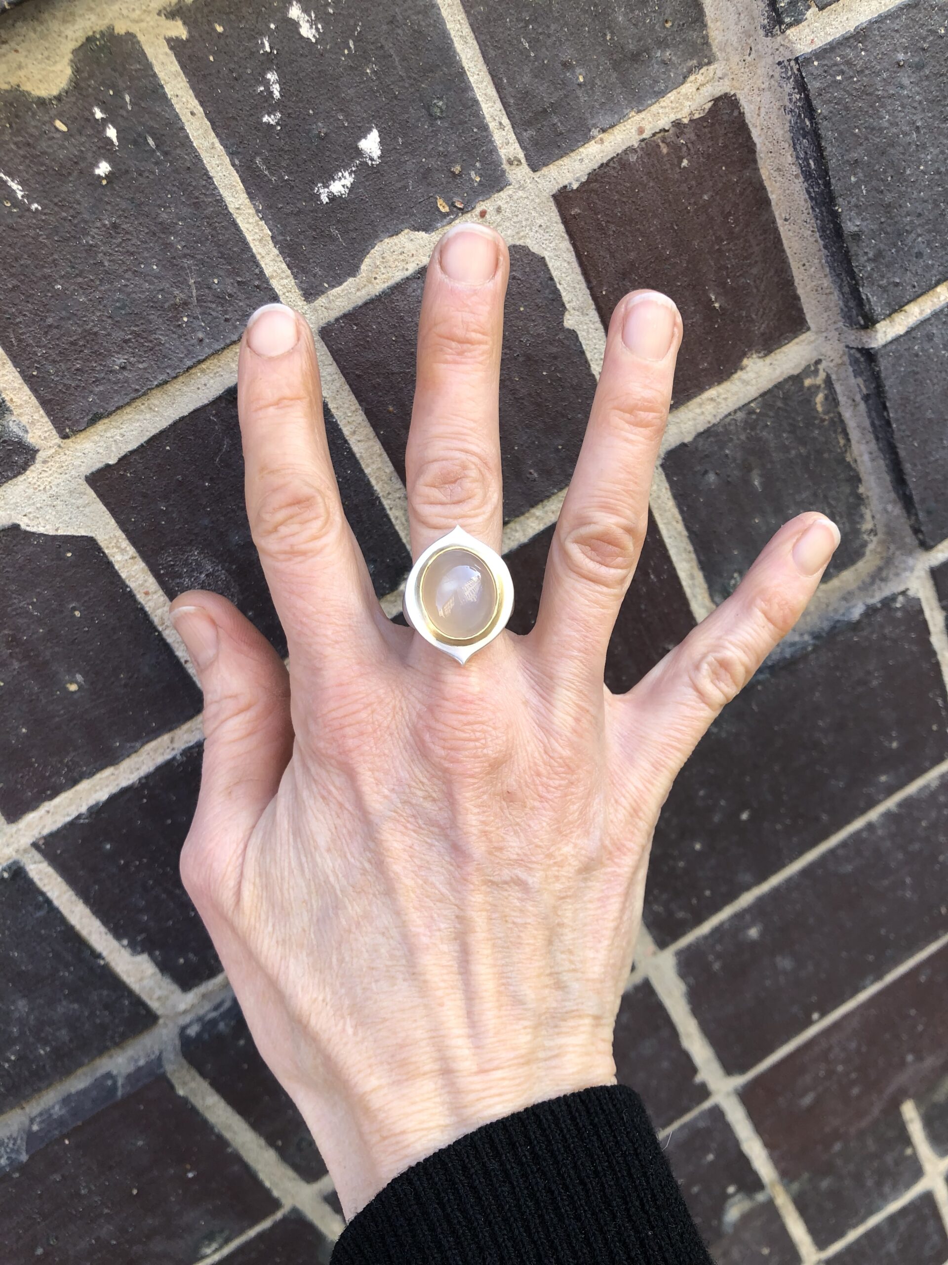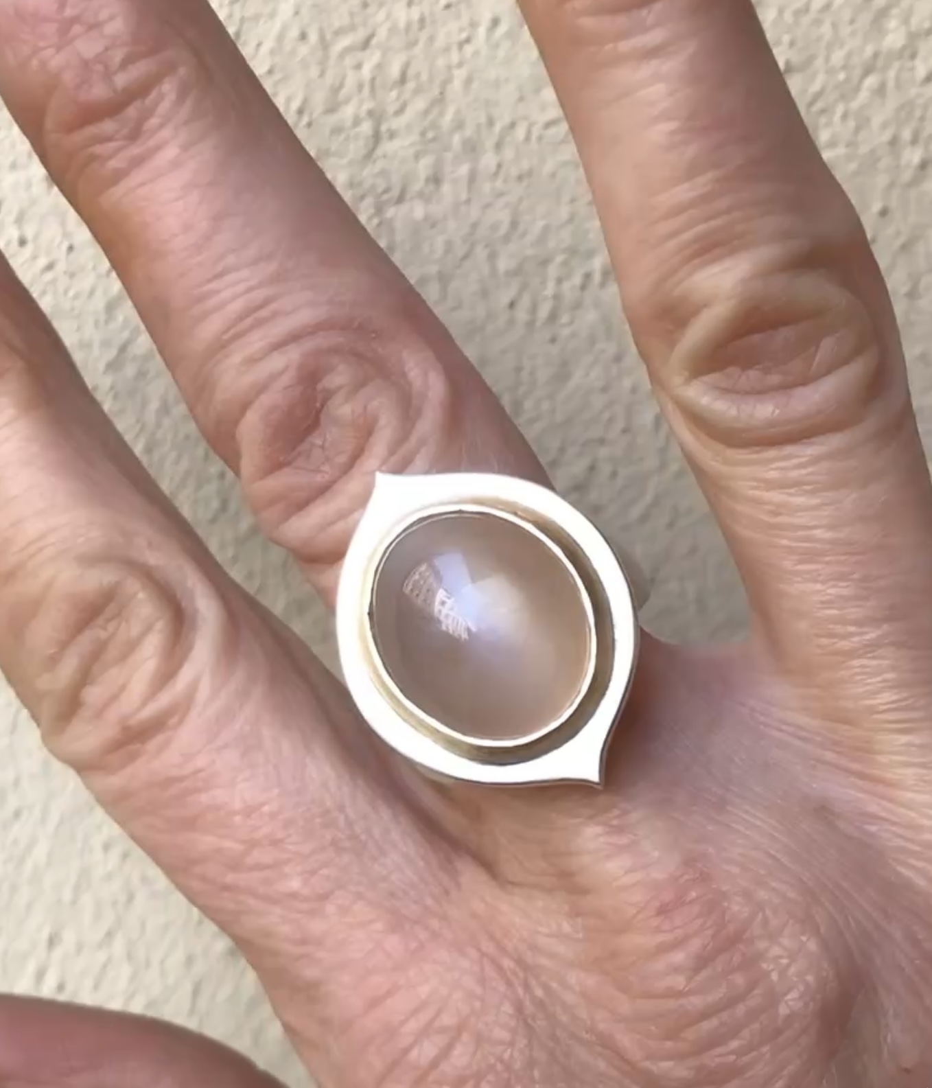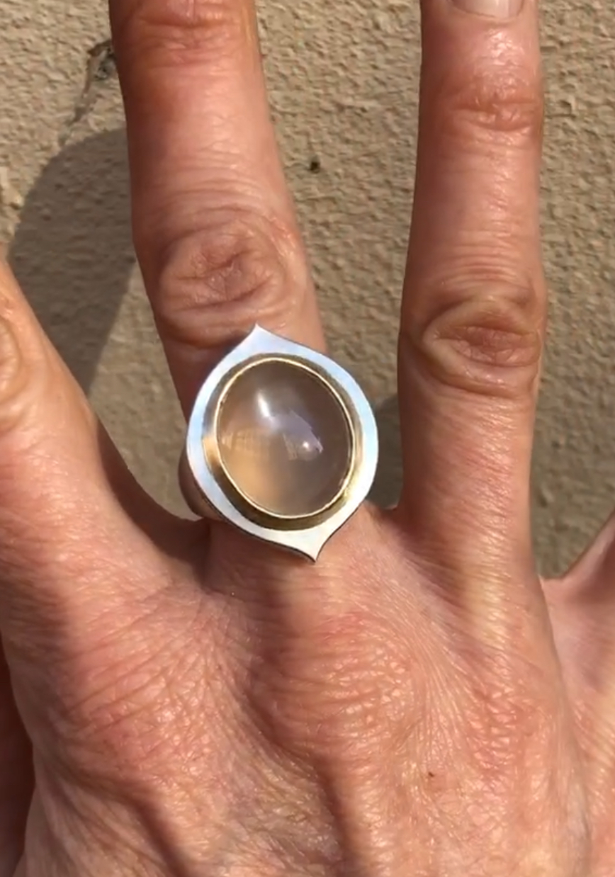 Ring aus Silber, Mondstein beige , Fassung Gold 750