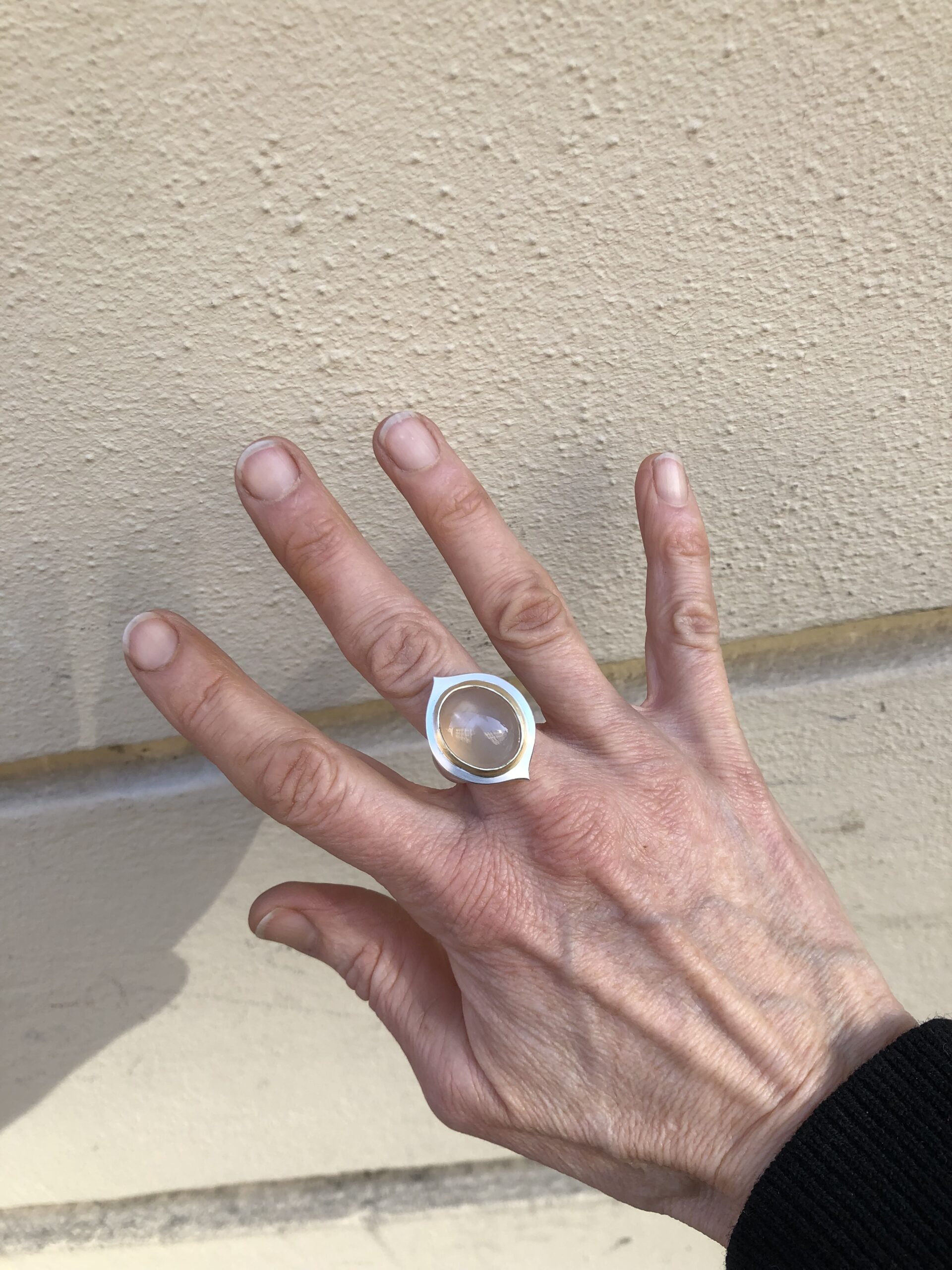 Ring aus Silber, Mondsteincabochon, Fassung Gelbgold 750