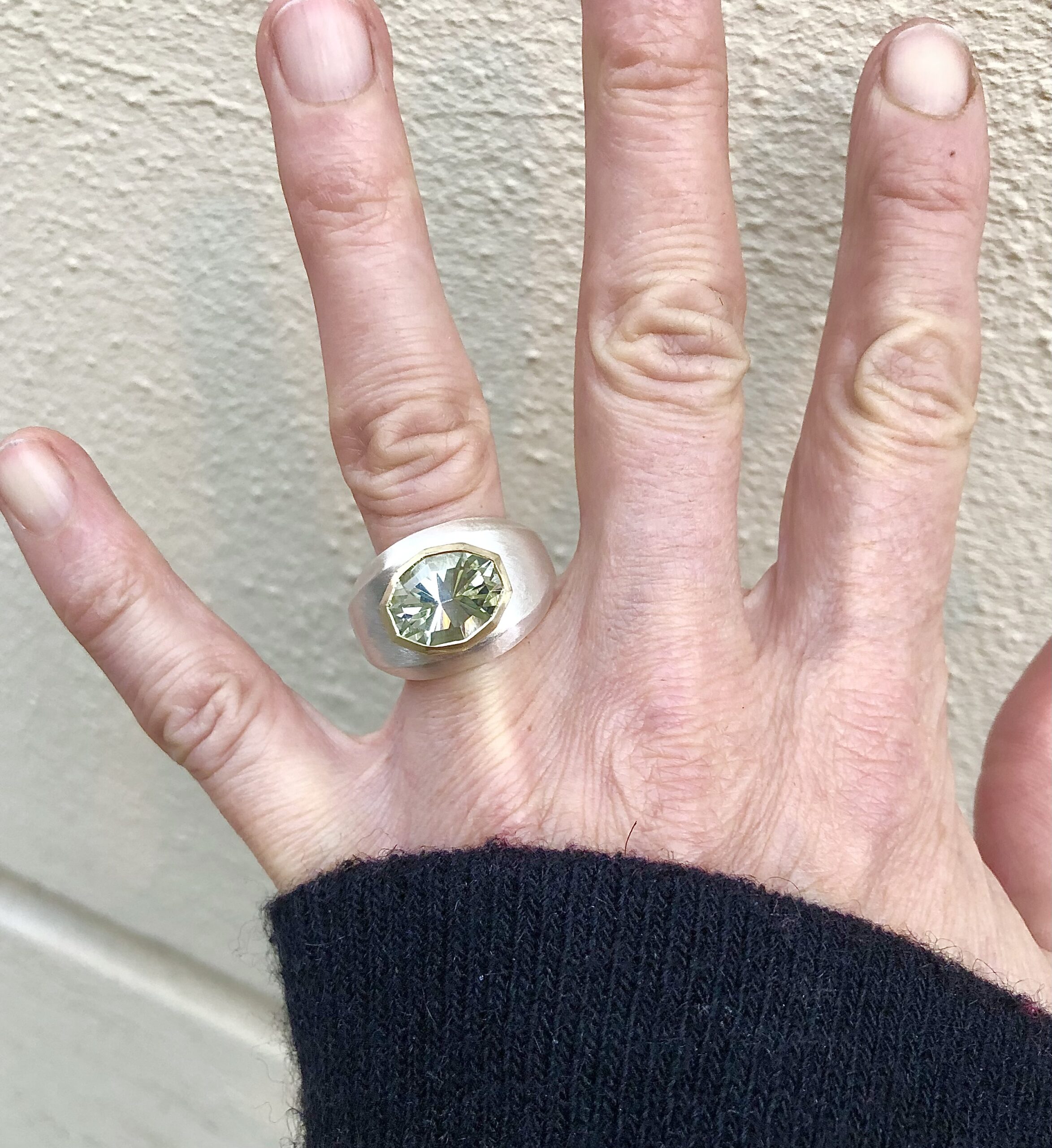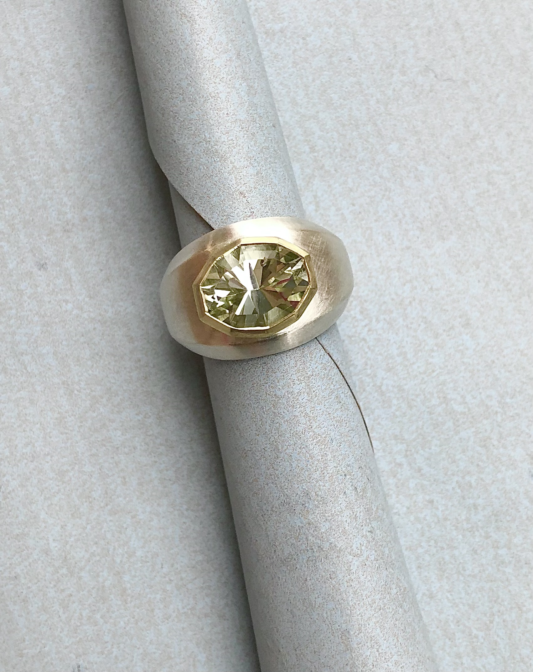 Ring aus Silber, Prasiolith fac. 9x12mm Fassung 585 Gelbgold