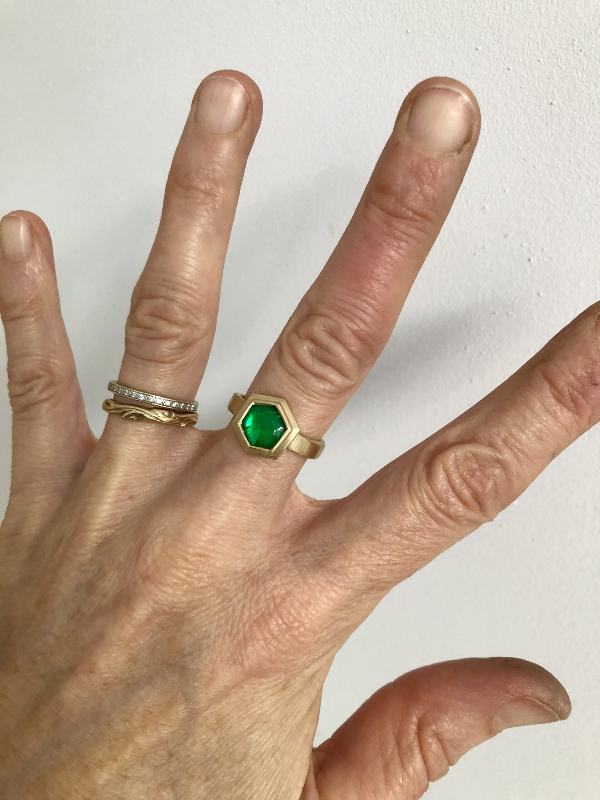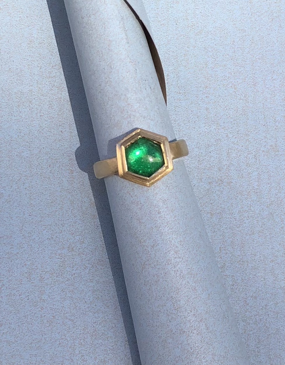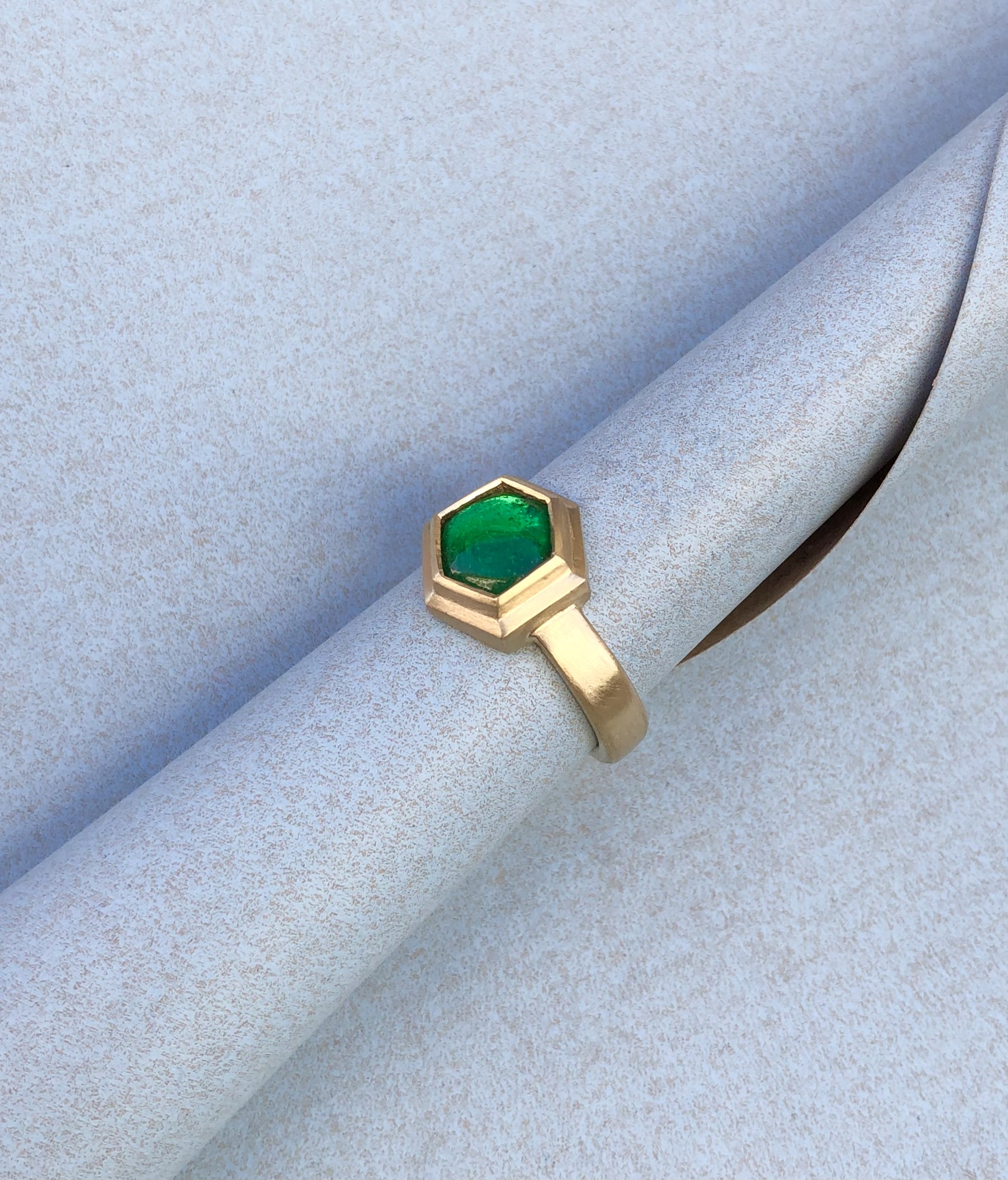 Ring in Gelbgold 750 Smaragdcabochon 6Eck